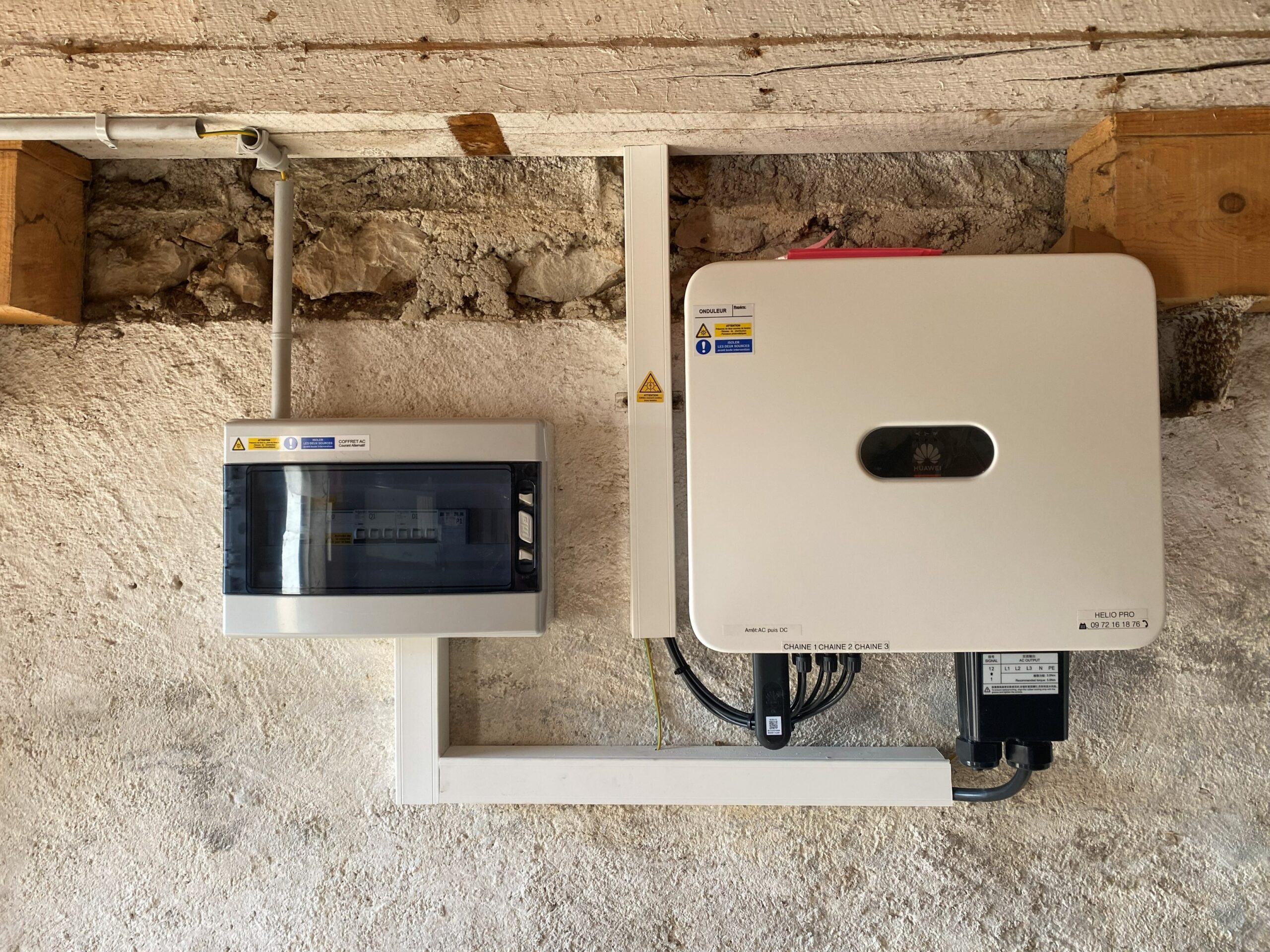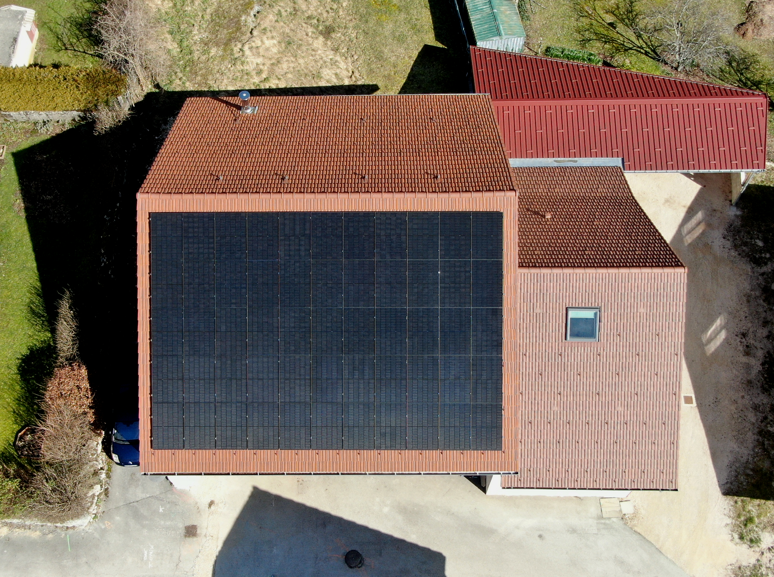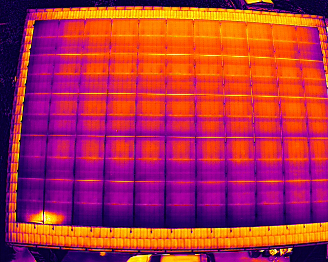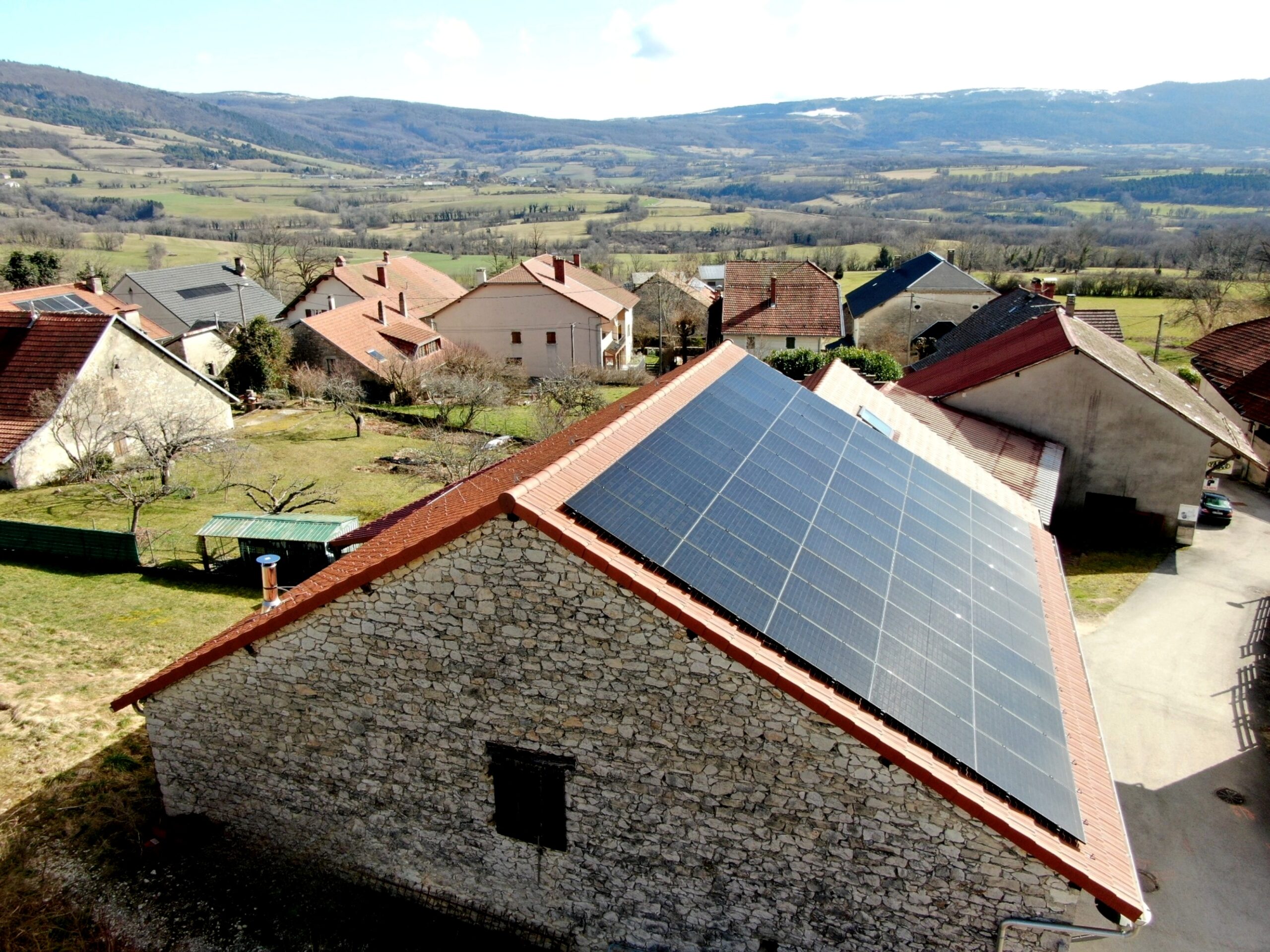 Nous avons mené ce premier projet avec le collectif citoyen centrale villageoise NEC Bugey (Nouvelles Energies Citoyennes) sur le toit d’un centre technique municipal. Lors de la mise en service, nos autocontrôles ont montrés un doute sur un défaut de fabrication d’un module. A l’aide d’un drone thermographique, le doute est levé, tous les modules fonctionnement parfaitement .