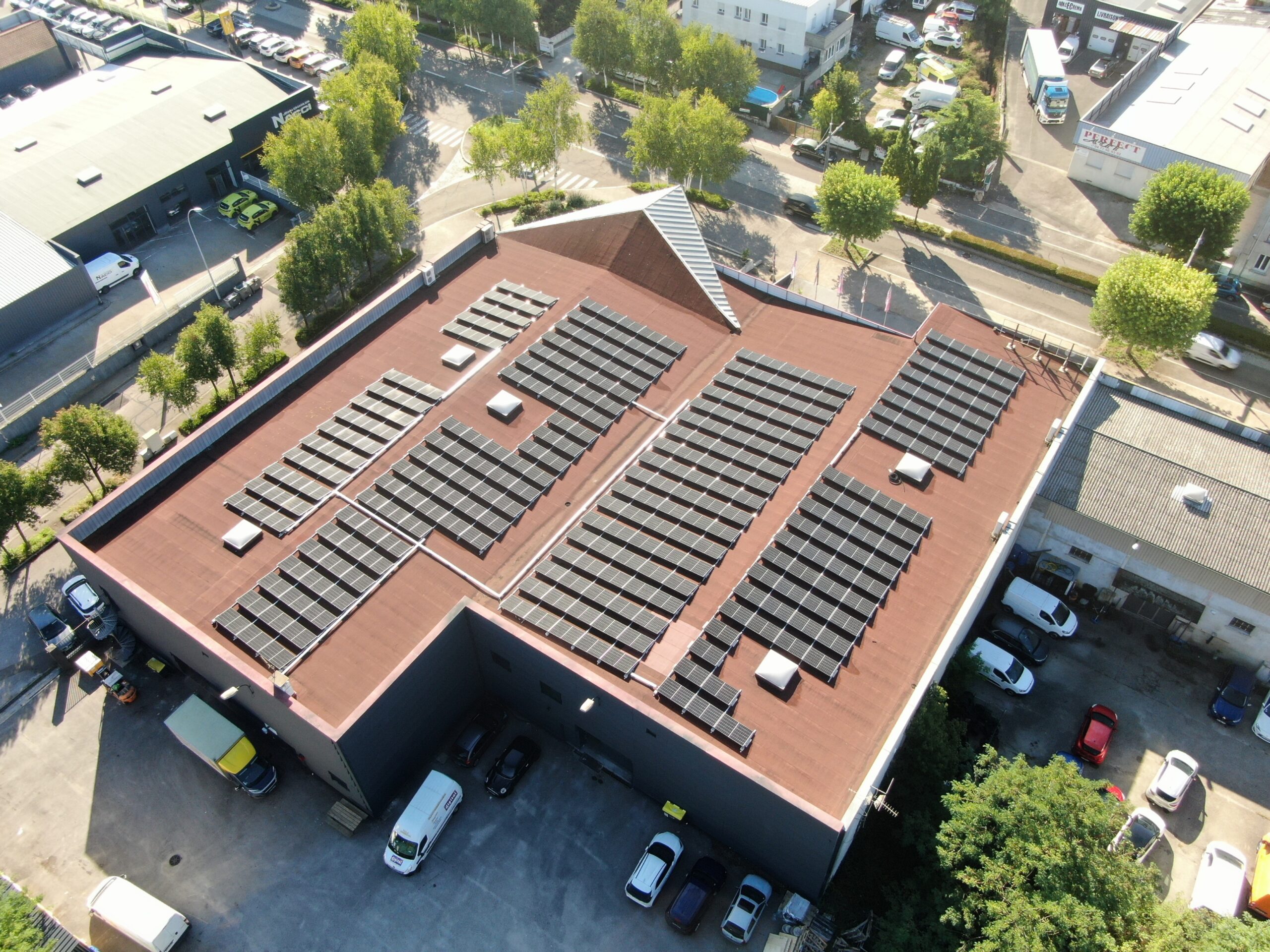 Le système lesté en toiture permet d’orienter les panneaux au sud pour une production optimale.
